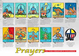 A series of 11 prints illustrating Christian Indigenous prayers.
